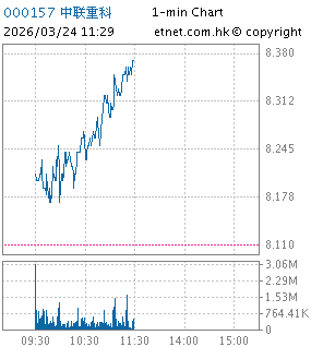 | 000157 | 中联重科 | 8.360 | +0.250 | +3.083% | 3.89亿 | 20.3902 | 深股通 | |