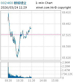 | 002460 | 赣锋锂业 | 68.180 | +0.600 | +0.888% | 25.06亿 | -- | 深股通 | |