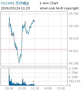 | 002466 | 天齐锂业 | 50.530 | +1.530 | +3.122% | 17.76亿 | -- | 深股通 | |