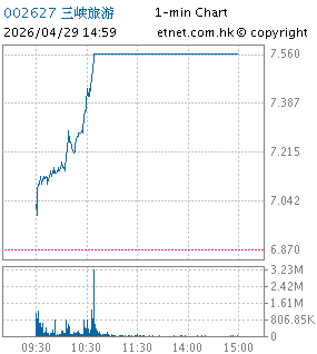 | 002627 | 三峡旅游 | 7.560 | +0.690 | +10.044% | 2.21亿 | 47.1616 | ||
