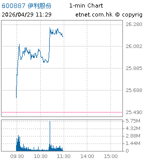 | 600887 | 伊利股份 | 26.230 | +0.740 | +2.903% | 16.92亿 | 19.7218 | 沪股通 | |