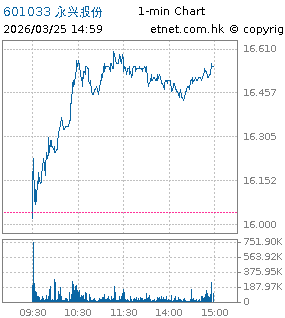 | 601033 | 永兴股份 | 16.550 | +0.510 | +3.180% | 2.35亿 | 17.9891 | 沪股通 | |